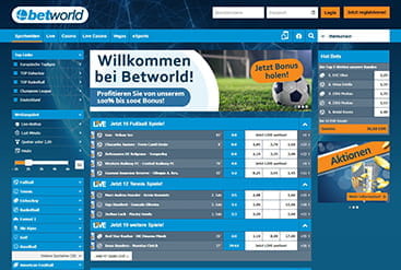 Als neuer Wettkunde wirst du bei Betworld sicherlich noch viel Freude haben und den ein oder anderen Top-Gewinn einstreichen. Die Wettquoten der Sport- und Livewetten sind lukrativ und vom Wettgewinn sind keine Wettsteuern zu entrichten. So profitierst du immer vom vollen Gewinn. Gut gefallen hat im Test auch, dass Betworld es sehr gut versteht viel Übersicht auf seiner Website zu schaffen.